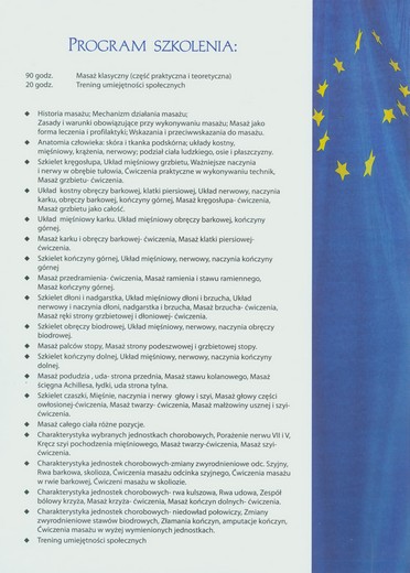 - 2-letnia szkoła medyczna ‚Technik Masażysta’ – typowo lecznicze, rehabilitacyjne – dyplomowany masażysta