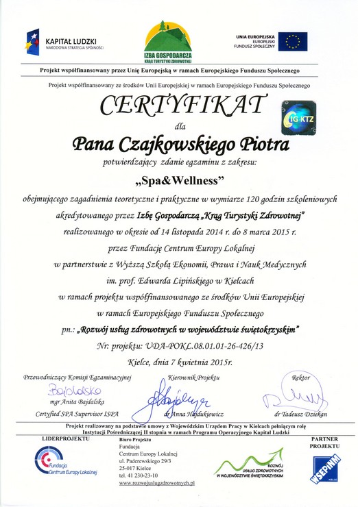 - SPA and Wellness certyfikat szkolenie